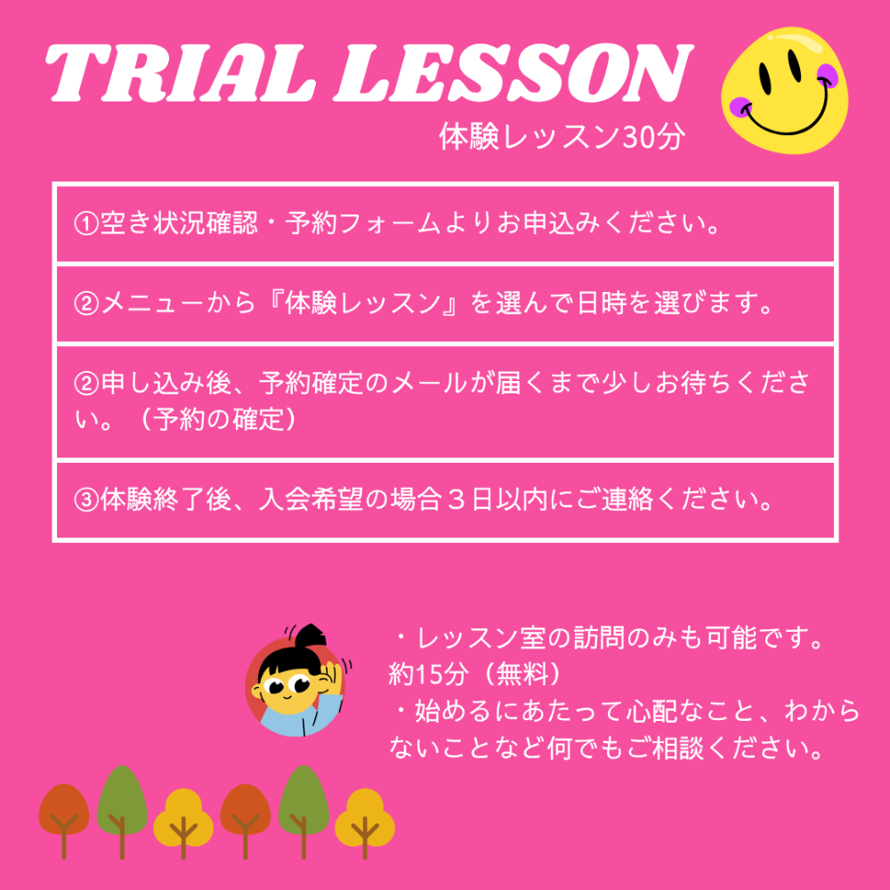 アトリエ・コロンブでは、生徒さんを募集しています。体験レッスンにお申込みされると、30分レッスン¥1000のところ11月12月に限り無料で体験できます。教室の雰囲気や講師との相性を確かめる機会になりますので、ぜひお試しください。レッスン室見学や説明会は随時無料で受付ております。レッスン内容やお月謝など、気になることは何でもご相談ください。